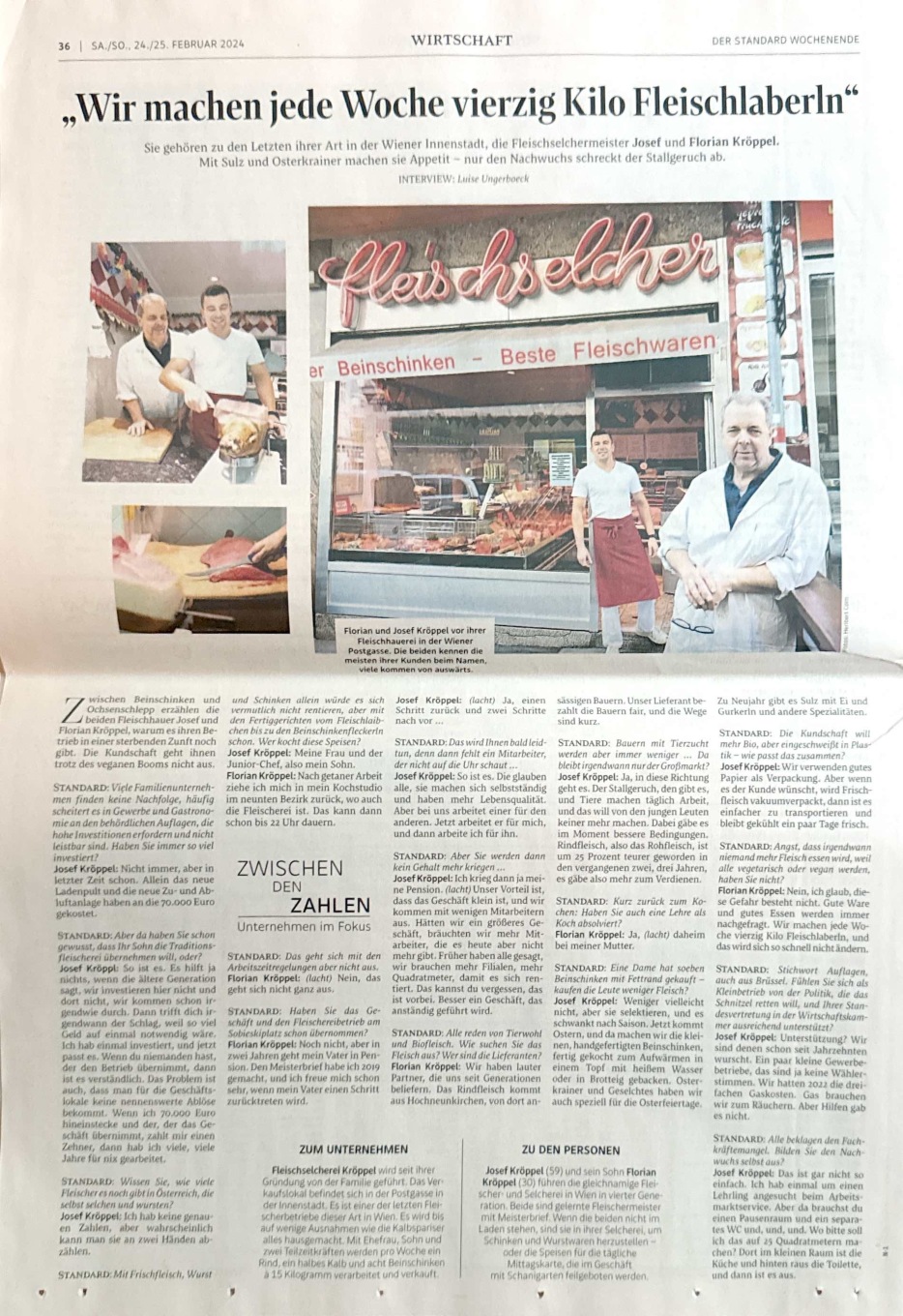 Die Fleischrei Kröppel im Ersten Bezirk: Grillen im Sommer - ein exklusives Interview mit der Tageszeitung Kurier, dass zeigt "Steak ist nicht gleich Steak"!